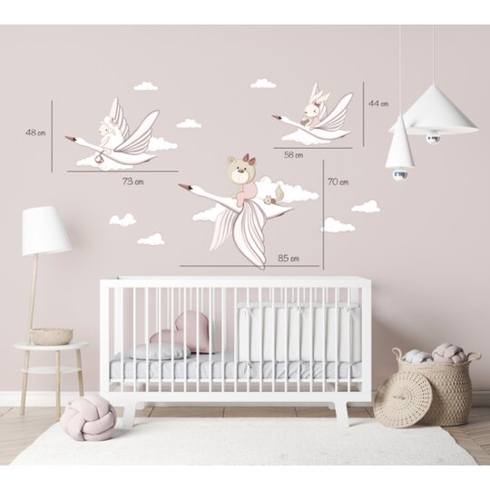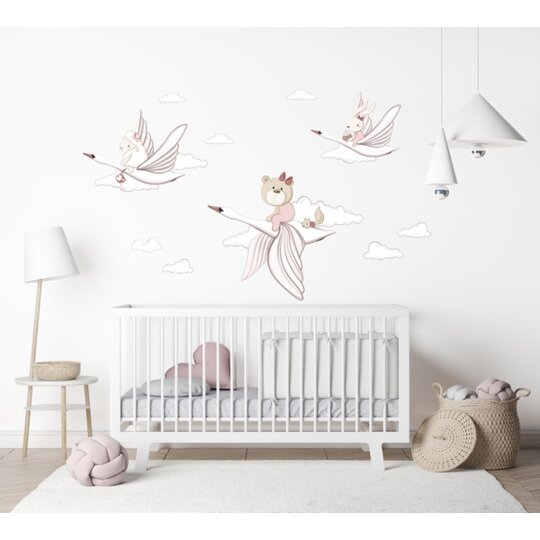 Hattyún repülő állatok, mályva-rózsaszín falmatrica lányszobákba